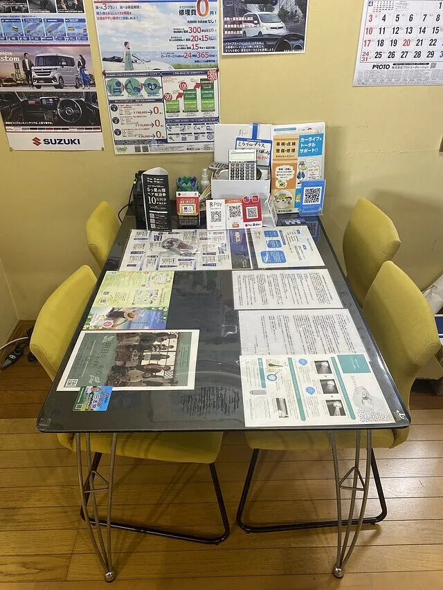 当店は国に認められた認証工場。だから車検・修理に必要な最新設備が揃っています。また時間を気にせずご相談いただける商談スペースや、車検・修理中もゆっくりとお過ごしいただける待合スペースを完備しております。